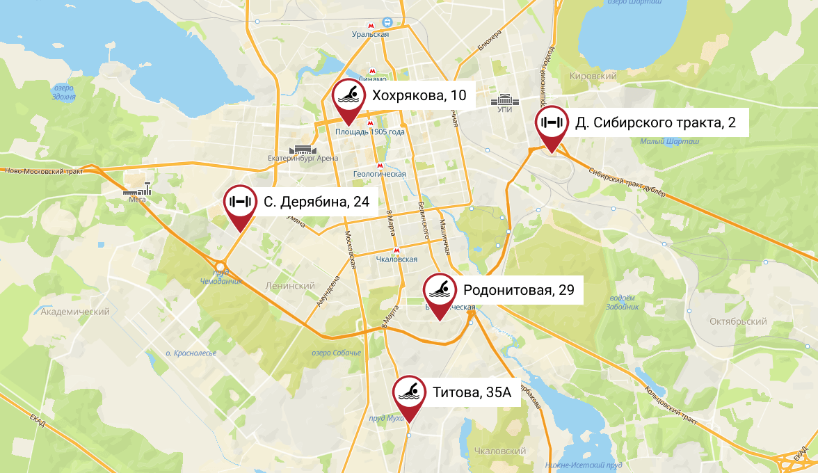 5 залов общей площадью 8 200 кв.метров. Американское оборудование для тренировок любого типа и уровня подготовленности.